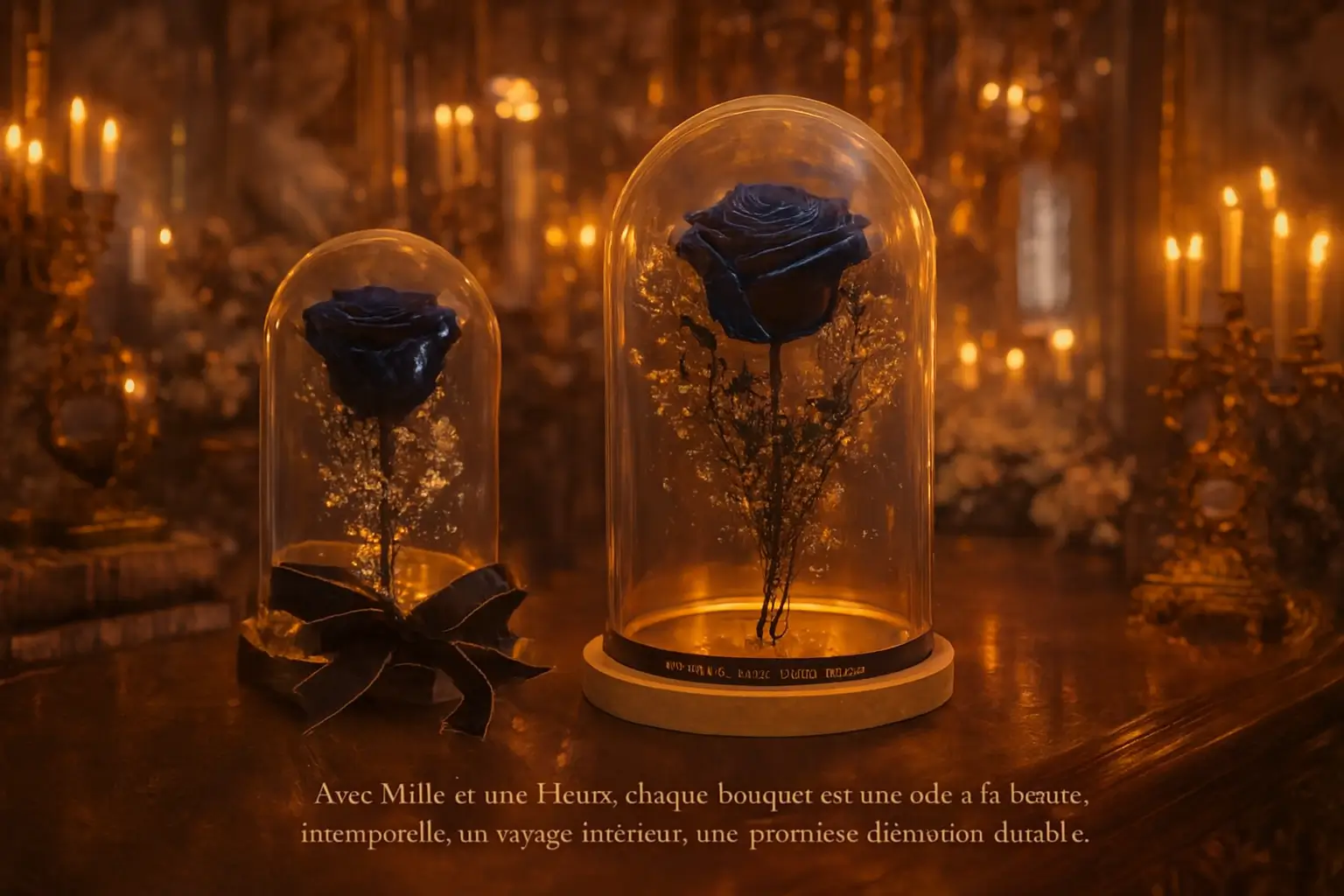Dans l’univers raffiné de Mille et une Fleurs, chaque création est conçue pour raconter une histoire et transmettre une émotion durable. Cette composition, intitulée Mille et une Fleurs sous cloche : la rose noire éternelle, incarne la rencontre entre l’art floral et la poésie visuelle. Plus qu’un simple objet décoratif, elle devient un symbole universel de mystère, de mémoire et d’amour intemporel.